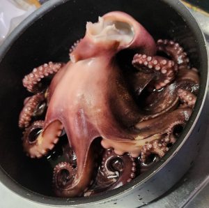 翌日、私は仕事だったので嫁がYouTubeでタコの茹で方を調べて下処理をしてくれました😊助かります🥹