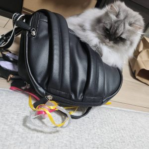 遊んでくれないので嫁のカバンに刺しておいたら、遊んでくれるまで退かないっと強い意志を感じましたꉂ